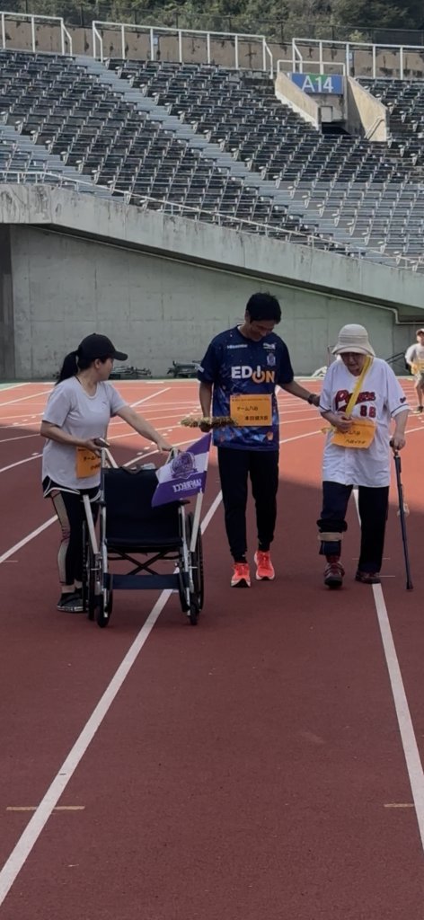 10/13(月)スポーツの日に、利用者さん、利用者さん家族さん、ヘルパーやリハビリの担当の方と一緒に、リレーマラソンに参加してきました。天気も良く、最高に楽しい経験をさせてもらいました。